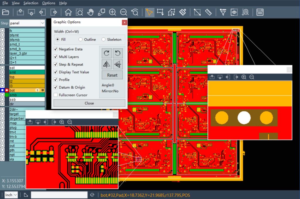 OpenCAM是由無(wú)錫東領(lǐng)智能科技股份有限公司開(kāi)發(fā)的一款輕量級(jí)PCB CAM圖形查看器。基于C++開(kāi)發(fā),具有超高的圖形顯示效率,完全支持ODB++8.1格式。